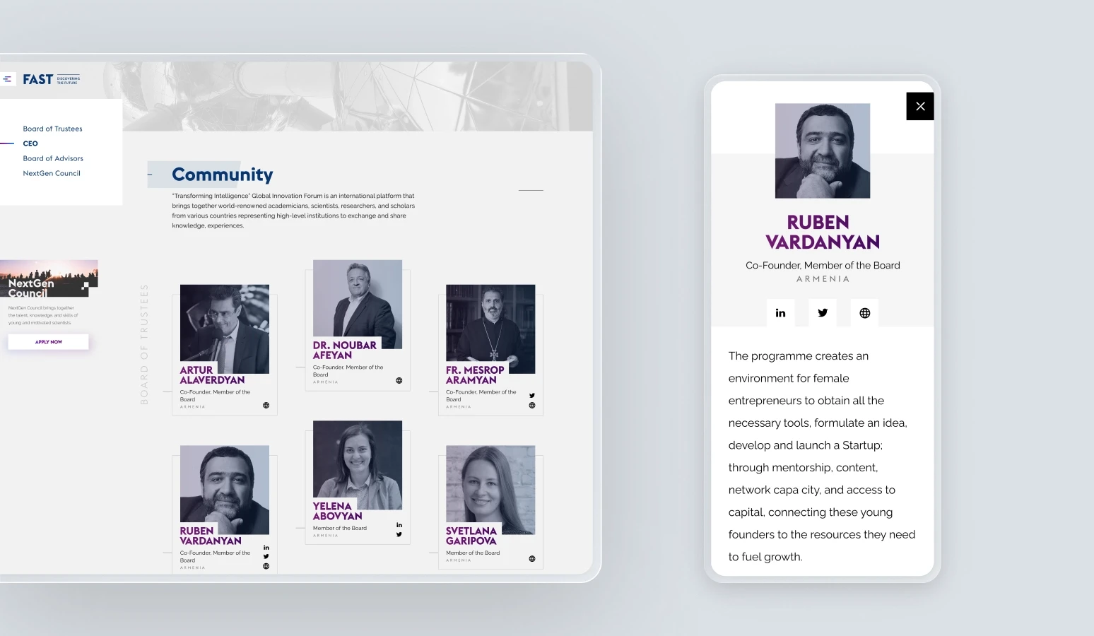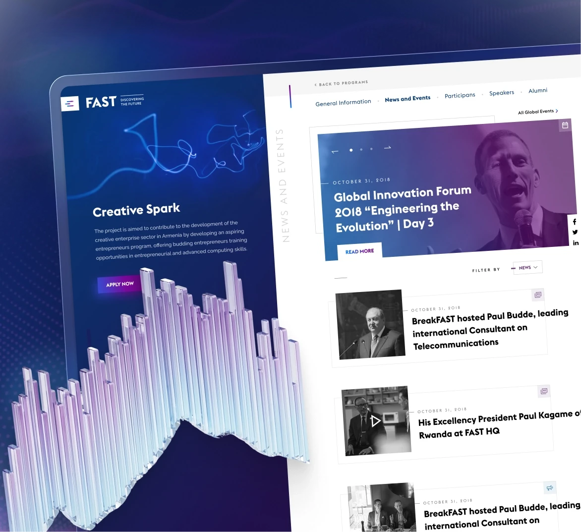 A content-heavy environment brought together into a single structured space. Programs, events, speakers, and applications live within one coherent system, not scattered pages. Navigation follows logic, not hierarchy, letting users move between information, participation, and context without friction.