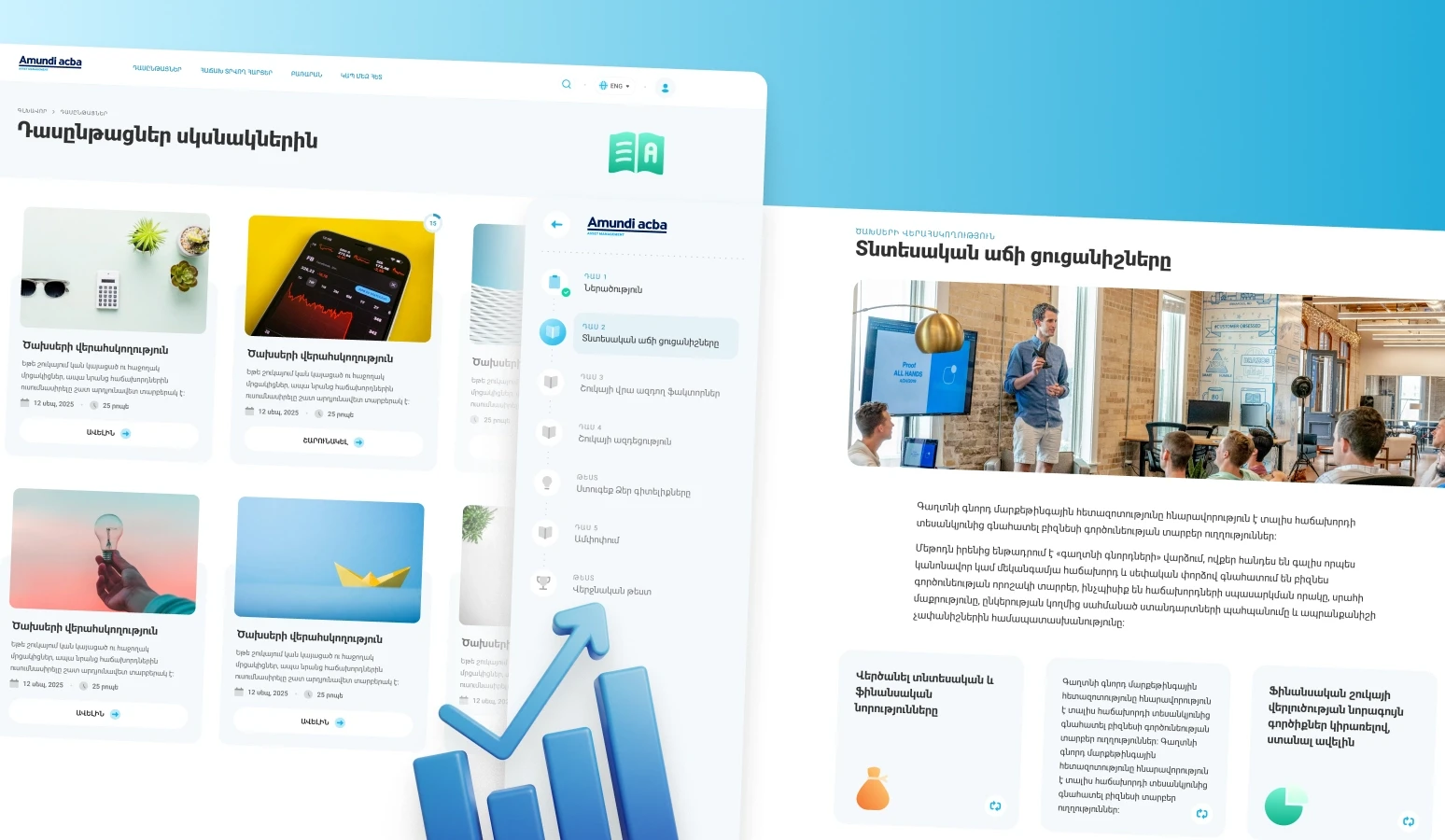 A structured e learning platform shaped around how students absorb financial knowledge. Courses are divided into modules, combining reading, video, and interactive tasks in one continuous flow. Progress is visible at every step, helping users stay engaged and move forward at their own pace.