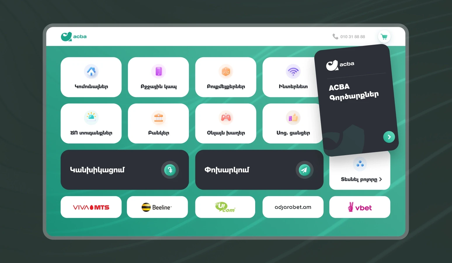 The interface was designed from scratch to handle over a hundred operations, from payments to loan repayments and mobile top-ups. Every screen had to work equally well on a bright day or in a softly lit branch, with hardware that was not originally built for high-resolution visuals.