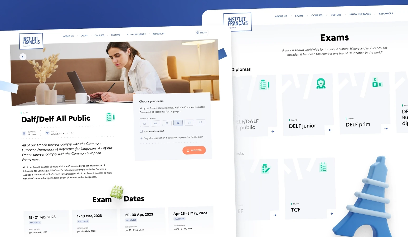 The product brought together several public-facing directions into one coherent digital experience. Courses, exams, events, resources, and study information now live inside a structured platform that feels clear, official, and easy to move through.