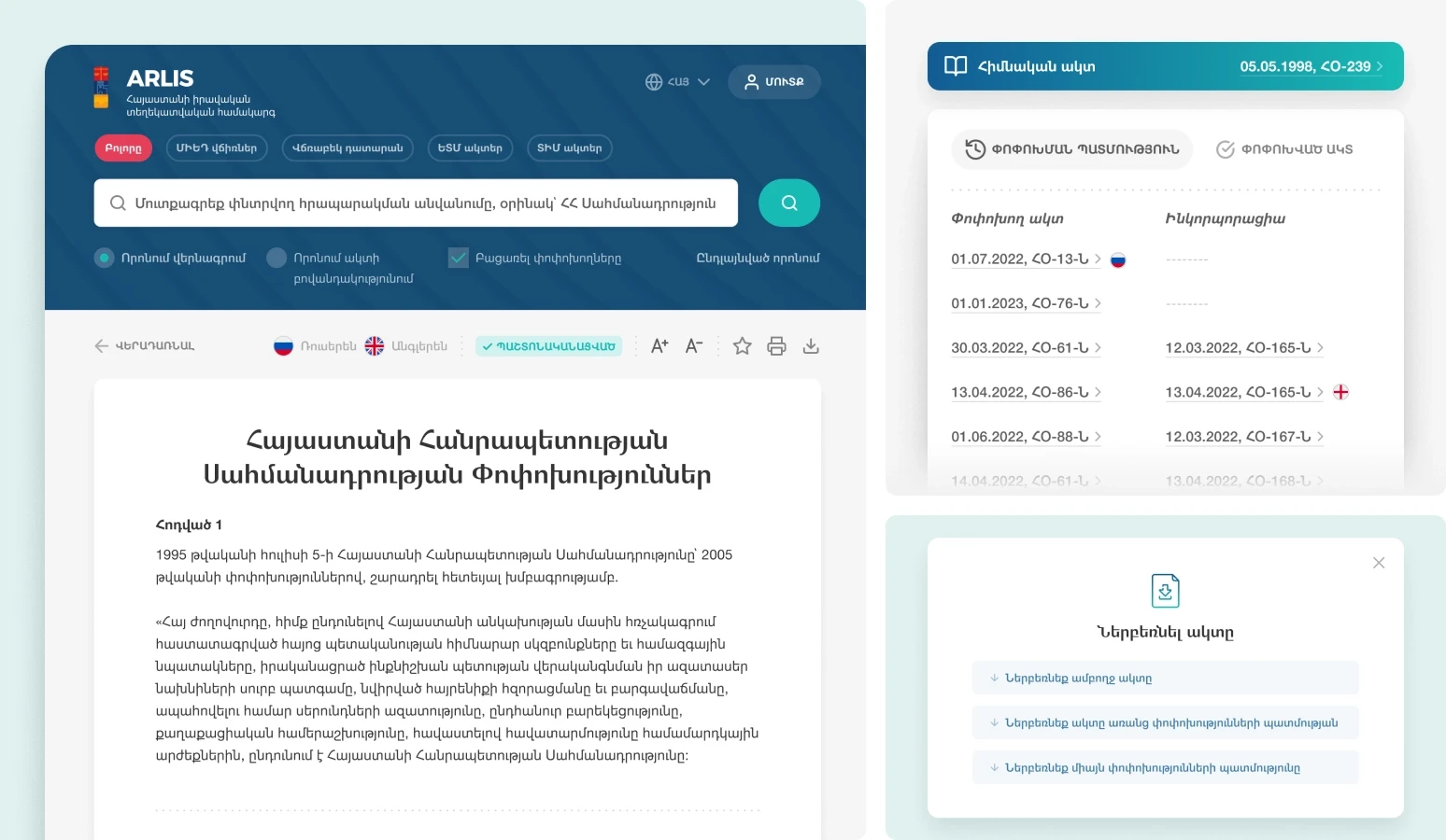 ARLIS is Armenia’s official government platform for publishing and maintaining legal acts and regulatory information.